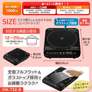 ihクッキングヒーター IHコンロ 卓上 1000W IHK-T32-B 送料無料 アイリスオーヤマ IH調理器 1口 ブラック IH卓上調理器 ガラストップ IHヒーター おしゃれ あす楽対応