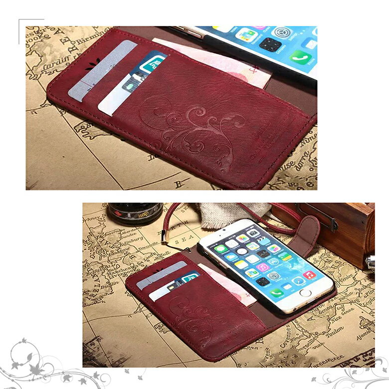 【送料無料 メール便発送】 iPhone 6/6s / iPhone6 Plus/6s Plus 専用レザーケース レトロ エンボス加工 ストラップ付け 全6色 【iPhone6s ケース Case iPhone6plus Cover カバー アクセサリー iPhone6 用】